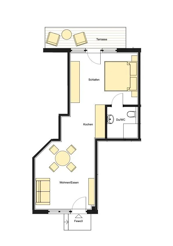 Modern eingerichtet lädt Sie unsere Ferienwohnung in perfekter Lage zum entspannten Urlaub ein. Genießen Sie das besondere Flair mit hohen Decken, großen Fenstern und offenem Wohnbereich. Die Morgensonne lockt zum Frühstück auf Ihre private Terrasse.
